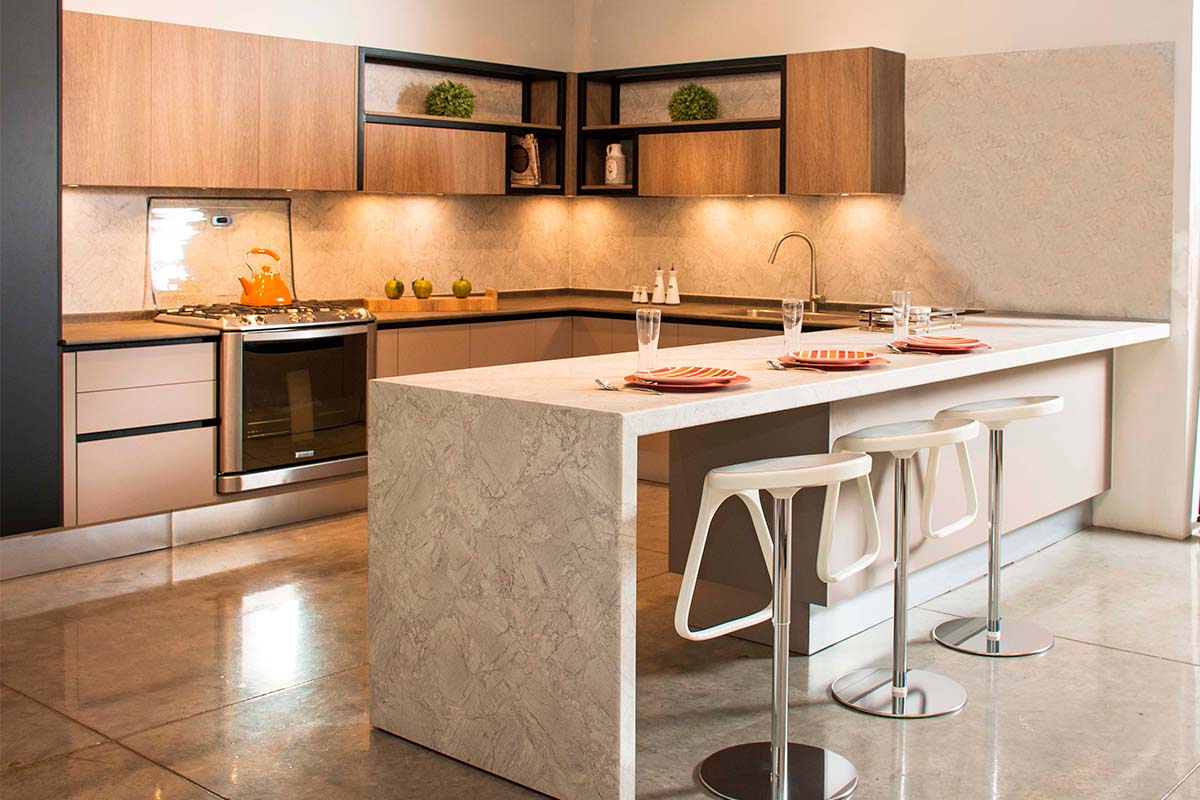 Seguramente te preguntas ¿qué debe de incluir una cocina?, la respuesta es muy sencilla, una Isla. Las cocinas con isla son la preferidas, pues además de que permiten una mayor funcionalidad al aprovechar el espacio al máximo, integran a la familia alrededor de la misma, permitiendo un contacto cálido y humano al momento de cocinar o tomar los alimentos. ¿Te imaginas reír y convivir mientras cocinas?
