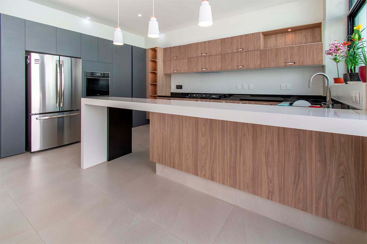Los espacios grandes tienen la ventaja que pueden integrar elementos que denotan una complicidad entre los felices dueños de la misma, tales como desayunadores, cavas, torres de hornos, grandes refrigeradores, paneras etc. No te limites, haz de tu cocina el punto de reunión por excelencia.